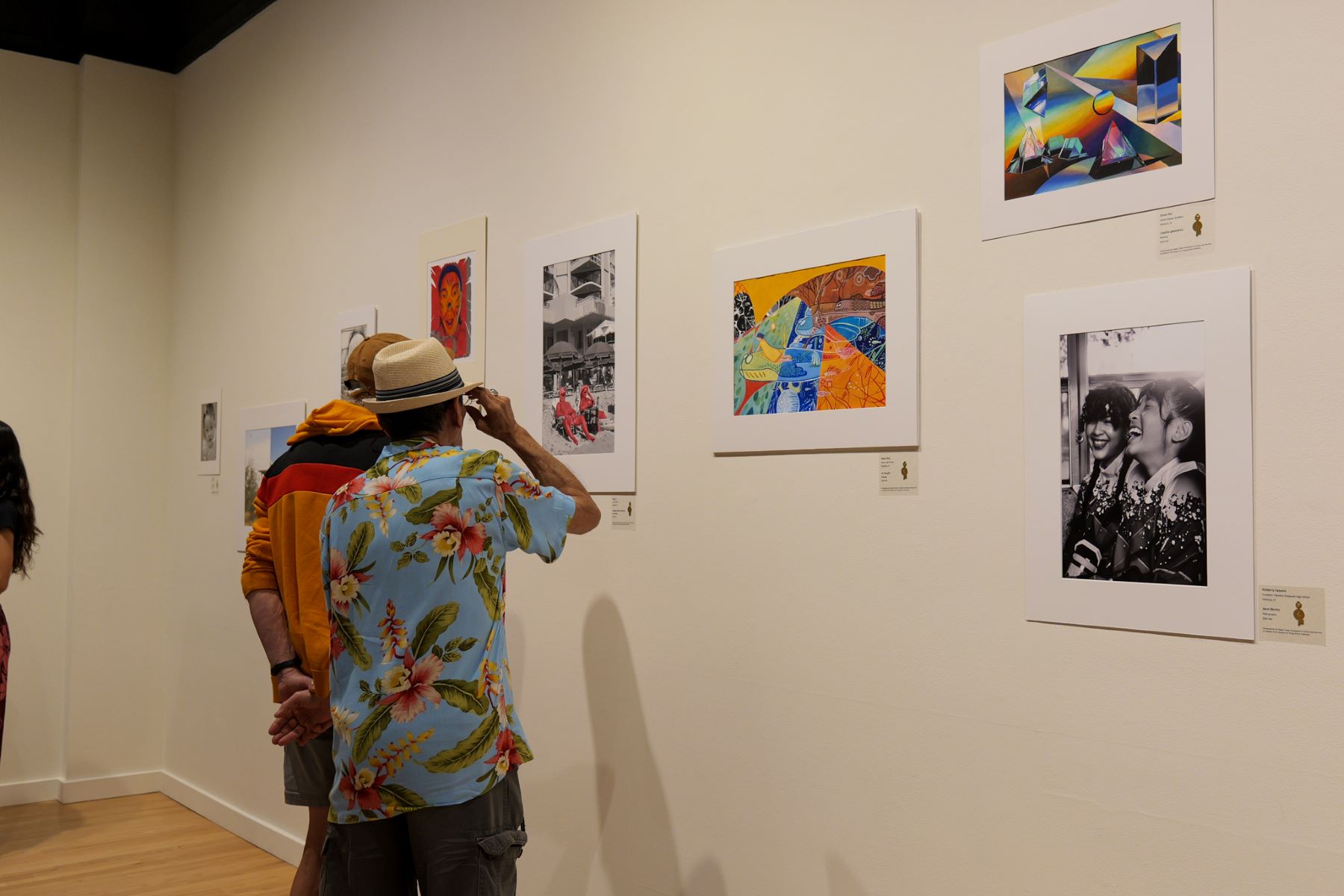 Museum visitors in the 2025 Hawaiʻi Regional Scholastic Student Art Awards exhibit at Capitol Modern: the Hawaiʻi State Art Museum. (Image courtesy: SFCA/DAGS)